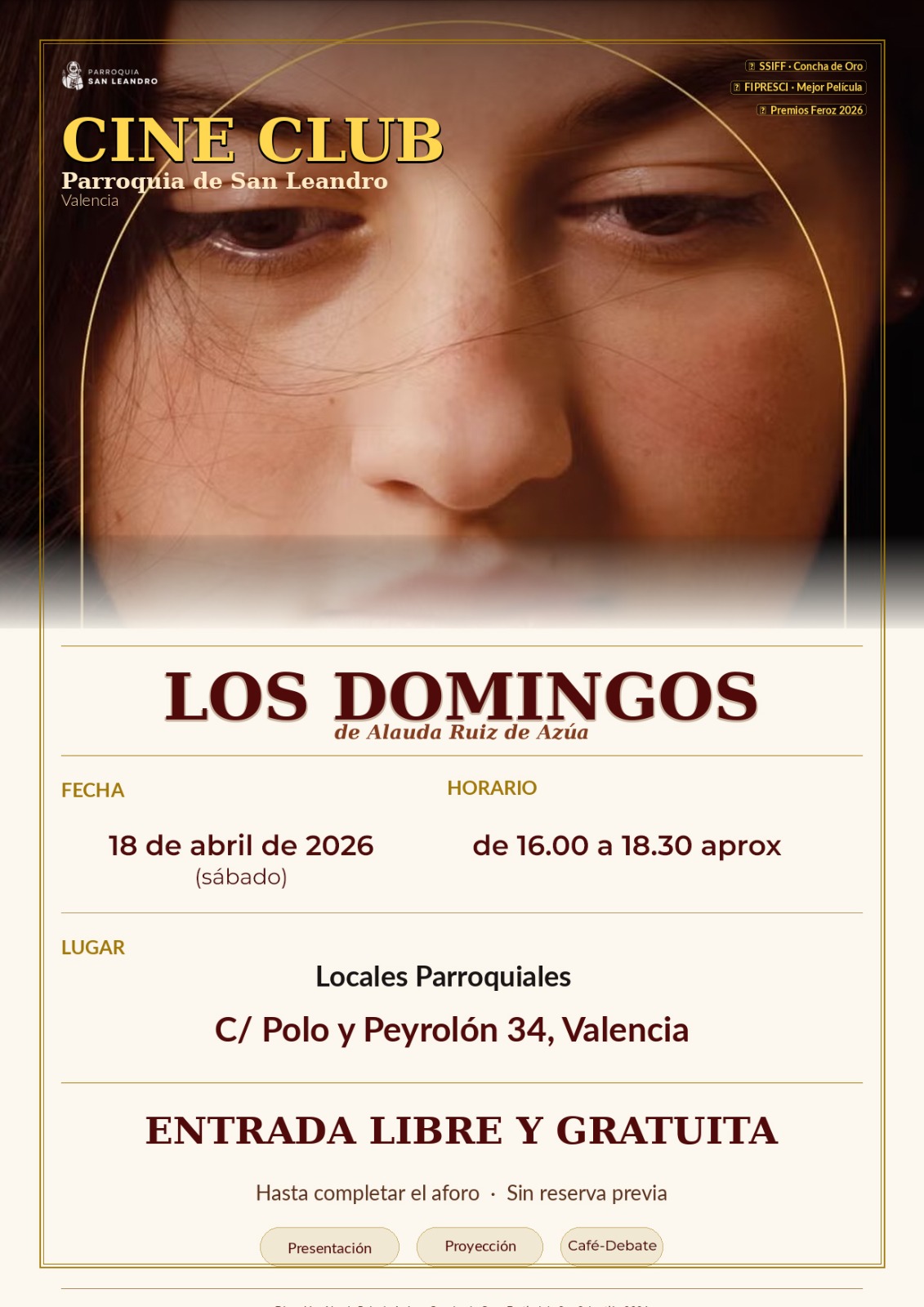 Será una buena ocasión para compartir una tarde distinta, dejarnos interpelar por lo que la película plantea y dialogar juntos en un ambiente cercano. La parroquia invitará a un café/chocolate con algo dulce.